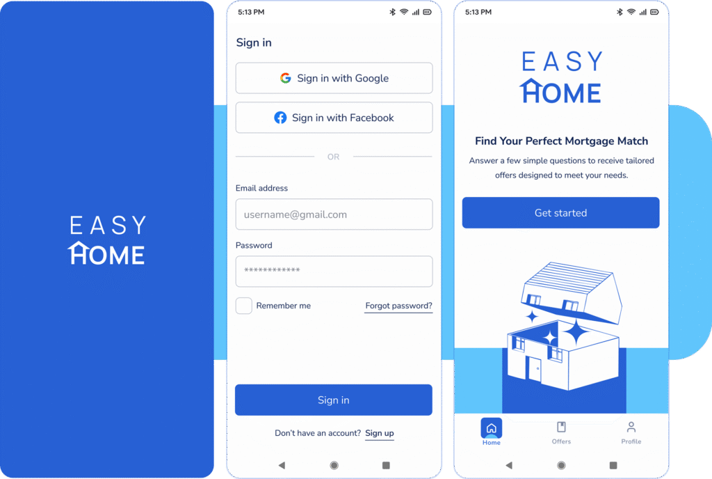 Home Easy is a digital mortgage calculator designed to support young couples at the very beginning of their home-buying journey. Based on their financial capabilities and housing goals, users receive tailored mortgage offers -empowering them to make informed decisions before committing to property searches or lengthy bank processes.